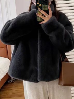 Stay warm and elegant with the Faux Fur Autumn and Winter Stand Up Collar Coat, featuring a soft plush finish, cozy insulation, and a stylish high-neck design for seasonal sophistication.