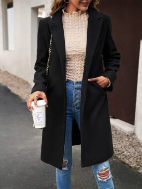 Step out in polished style with this Womens Tailored Mid-Length Coat Jacket, offering a refined silhouette and timeless elegance for any occasion.