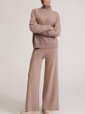 $59Cozy and coordinated, this patterned high collar and pants knitted set combines warmth with stylish design.