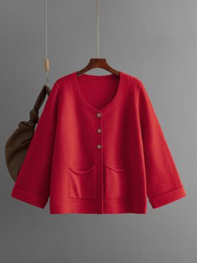 Classic and cozy, this knitted cardigan with three buttons is a versatile layering piece for any season.