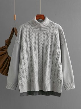 Cozy and stylish, this thick turtleneck sweater with side slits offers warmth with a modern edge.