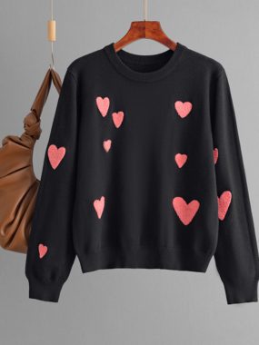 Sweet and cozy, this round neck sweater with heart-shaped pattern adds charm and warmth to your casual wardrobe.