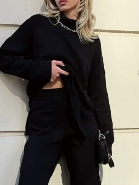 Thick Turtleneck Sweater with Side Slits