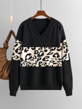 $ 31Fierce meets cozythis V-neck leopard pattern pullover adds wild charm to your autumn and winter wardrobe.