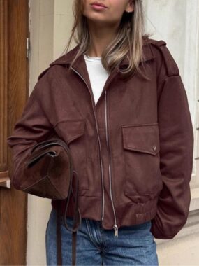 Add a touch of modern edge to your wardrobe with this Womens Bomber Suede Jacket. Designed for style and comfort, it features a soft suede finish and a timeless bomber silhouette perfect for everyday wear.