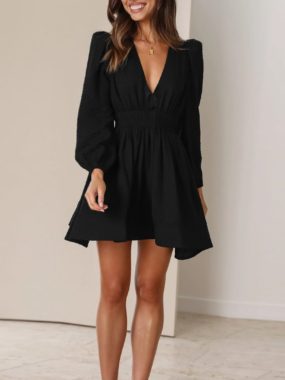 Make a statement with this Womens Long Sleeve Deep V Short Empire Dress. Elegant and flattering, its perfect for parties, evenings out, or special occasions.