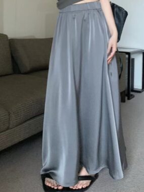 Elegant and versatile, this basic satin long skirt offers a sleek silhouette and a soft sheenperfect for both casual elegance and special occasions.