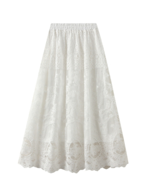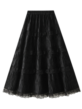 Elevate your wardrobe with this A-line paneled flouncy skirt, featuring a feminine ruffled hem and graceful flow. Perfect for both casual and semi-formal looks.