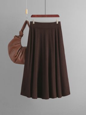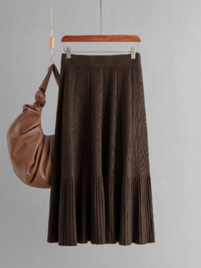 Women’s knitted mid length high quality big sizes autumn winter pleated skirt.