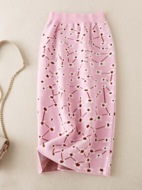 Stylish knitted patterned midi skirt for a fashionable and cozy look.