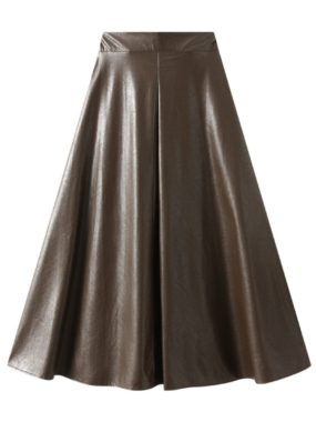 Sleek and edgy PU leather midi-skirt in a bold solid color perfect for modern, confident looks.