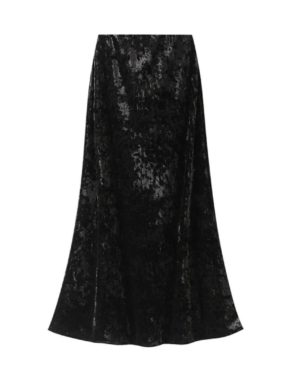 Elegant velvet A-line midi skirt with a soft drape and timeless silhouette for refined everyday wear.