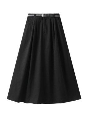 Breathable cotton midi skirt featuring a waist-defining belt for casual comfort and everyday style.