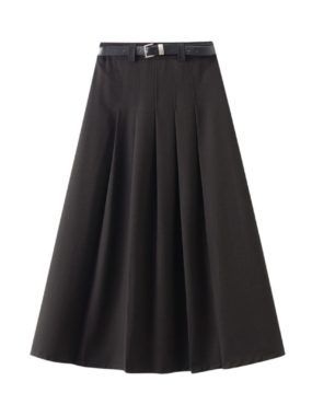 High Waist Pleated Midi Skirt with Belt