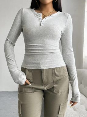 $17A timeless ribbed top with button-up detailperfect for layering or styling solo.