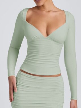 $19Stylish and unique, this long sleeve diamond-shaped neck top adds a modern twist to classic casual wear.