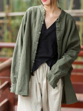 $38Lightweight and breathable ramie shirt with long sleeves, perfect for keeping cool and stylish during summer days.