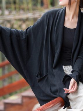 $44Lightweight linen mid-length cardigan with a loose fit, perfect for layering on breezy summer days.