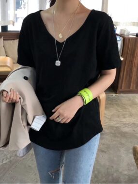 $14Lightweight and breathable V-neck T-shirt made from soft bamboo-cotton blend, perfect for summer comfort.