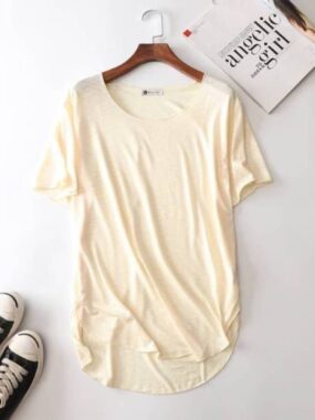 $14Lightweight and breathable round-neck T-shirt made from soft bamboo-cotton blend, ideal for summer comfort.