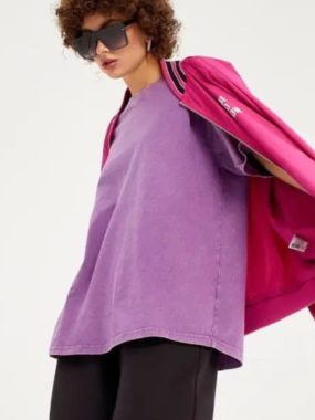 Trendy womens acid-washed T-shirt in a solid colorsoft, casual, and perfect for everyday wear.