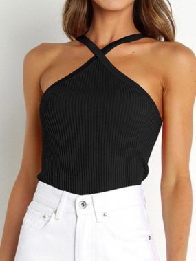 Trendy ribbed summer top with stylish crisscross straps for a chic, casual look.