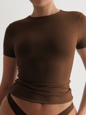 Classic solid color slim-fit short T-shirt for a simple yet stylish summer look.