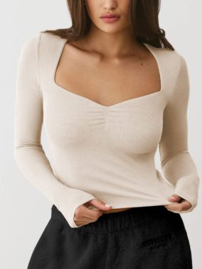 Elevate your everyday look with our Long Sleeve Solid Color Square Neck Casual T-Shirt soft, flattering, and effortlessly stylish.