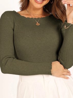 Stay cozy and elegant with our Womens Ribbed Soft Elastic Knitted Long Sleeve Top stretchy, breathable, and perfect for effortless everyday style.