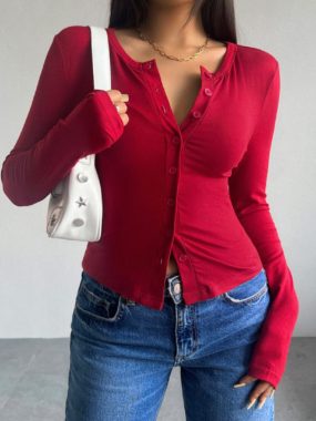 Stay effortlessly stylish with our Womens Long Sleeve Thin Button Up Ribbed Top lightweight, stretchy, and perfect for all-season wear.