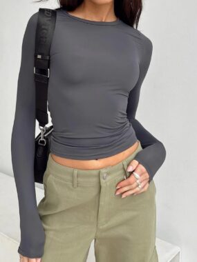 Stay chic and comfortable with our Womens Long Sleeve Slim Fit Elastic Top With A Twist stylish, stretchy, and perfect for effortless spring and autumn fashion.