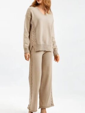 Relaxed and stylish, this V-neck Loose Fit Sweater with Pants set is the perfect blend of comfort and everyday elegance.