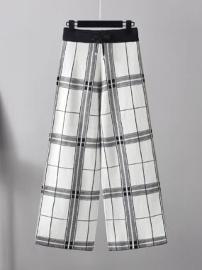 Bring retro charm to your cold-weather wardrobe with these wide-leg plaid knitted pantswarm, stylish, and easy to wear.