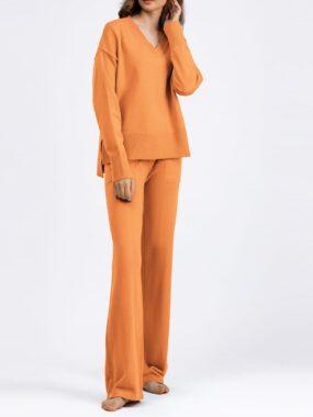 Soft, stylish, and effortlessly coordinated this Women’s Knit Set with T-Shirt and Pants is the ultimate outfit for comfort and ease.