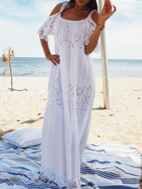 Elegant white lace maxi dress, perfect for summer and special occasions.