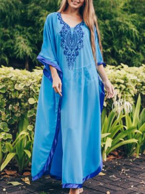 Elegant embroidered loose-fit beach robe for relaxed vacation style.