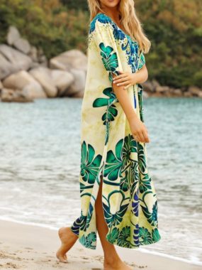 Lightweight V-neck breathable cover-up for relaxed beach style.