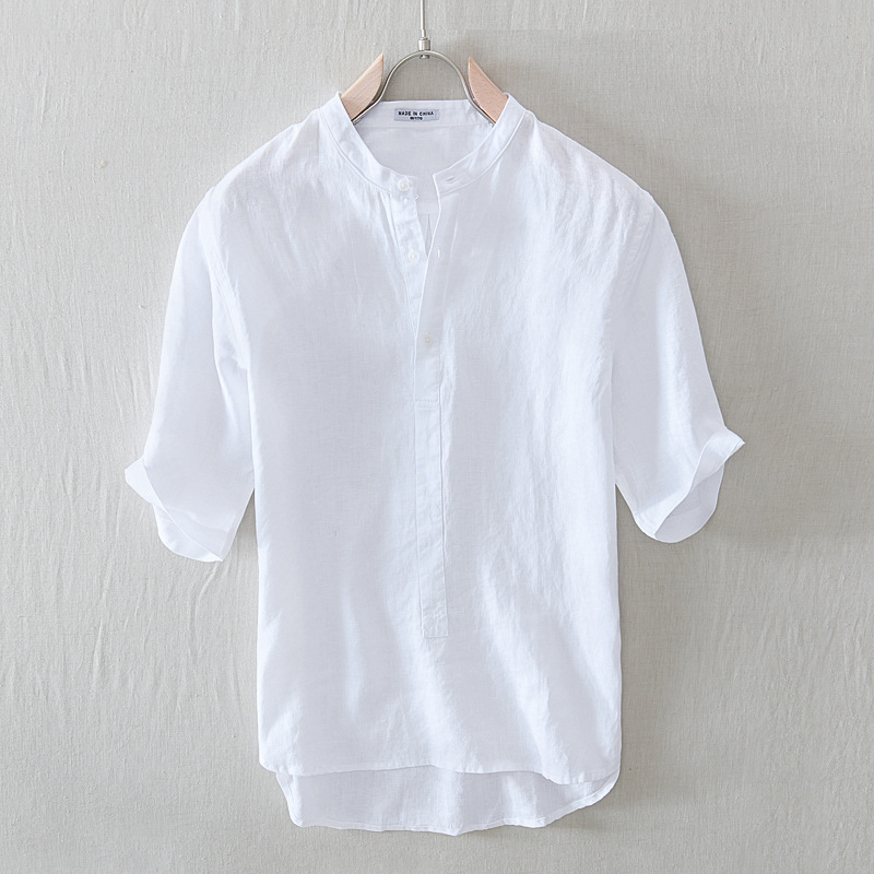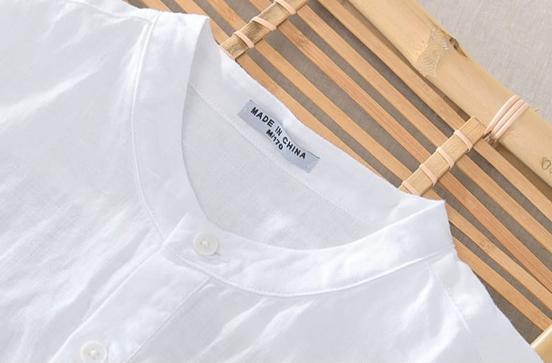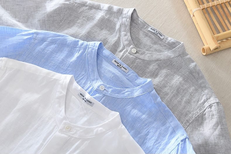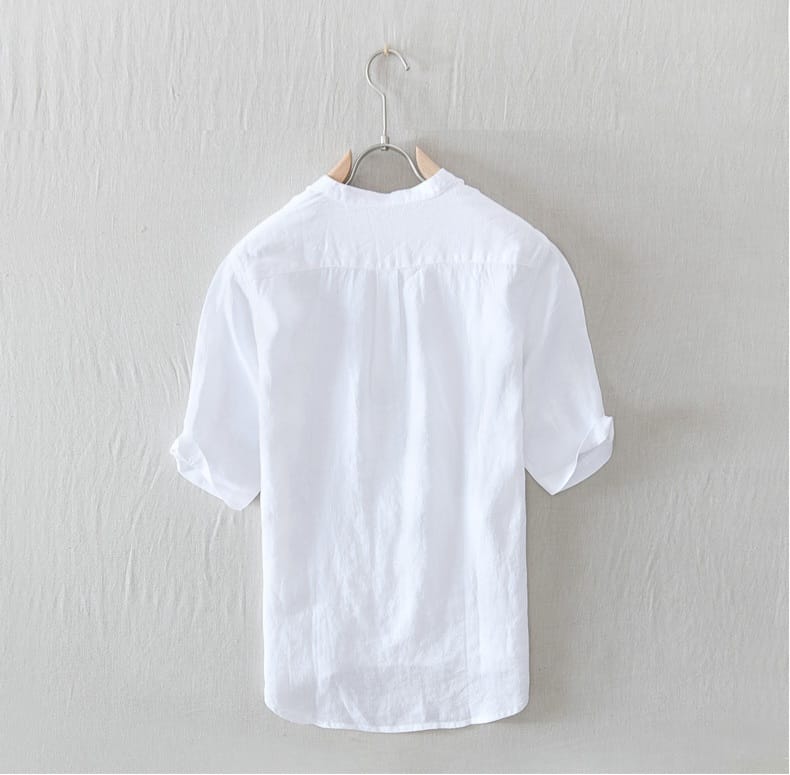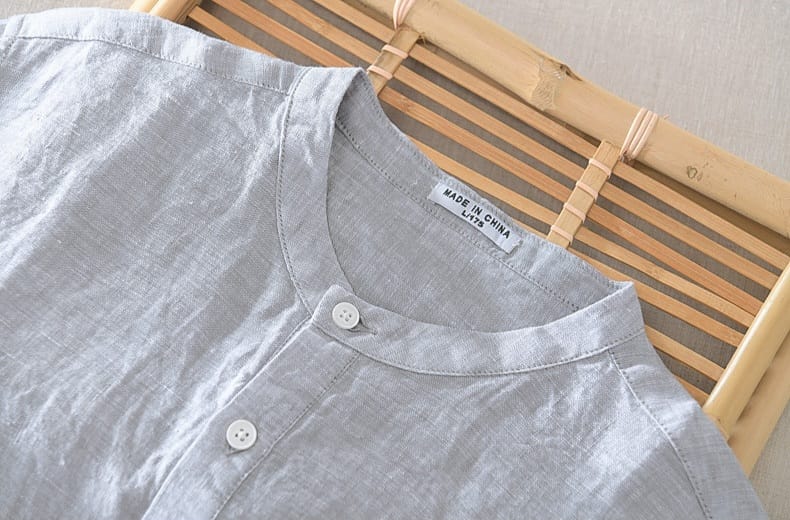 100% Linen Mao collar 3 Buttons Shirt