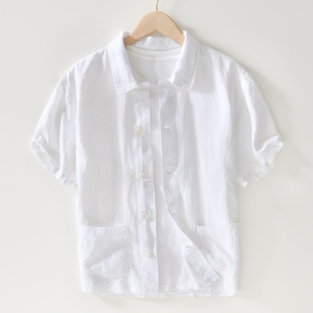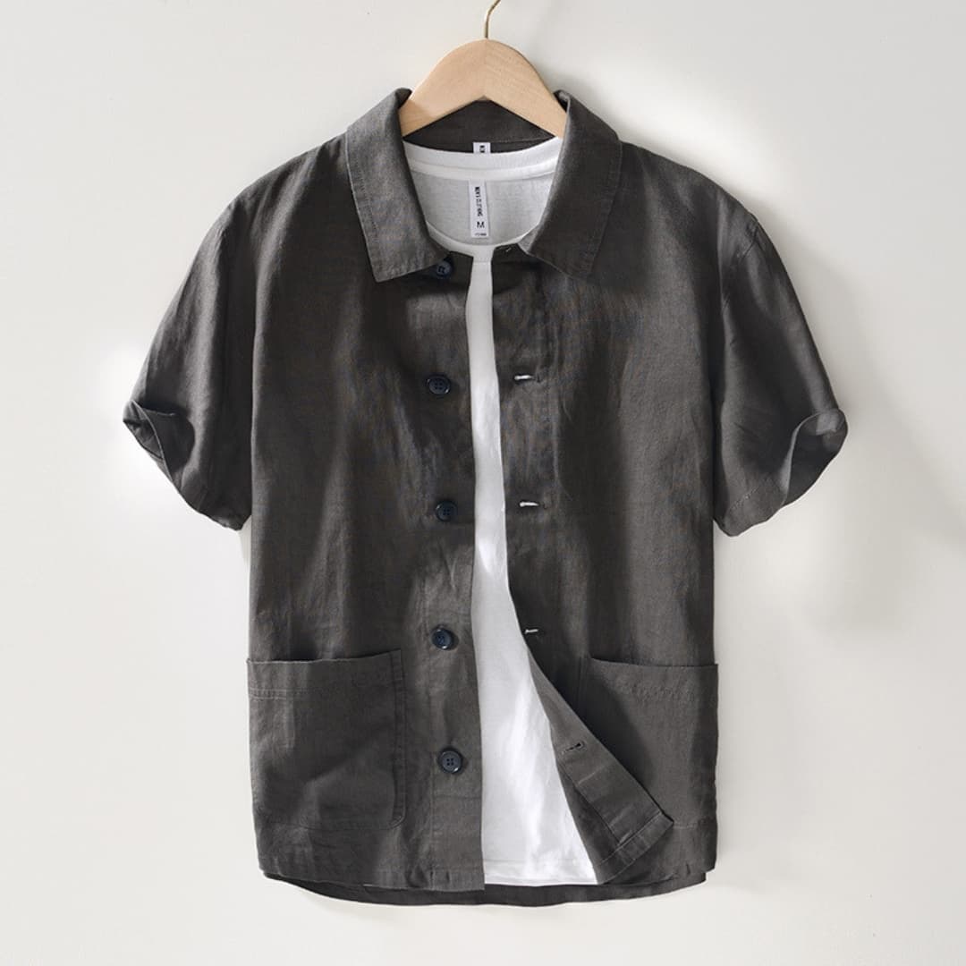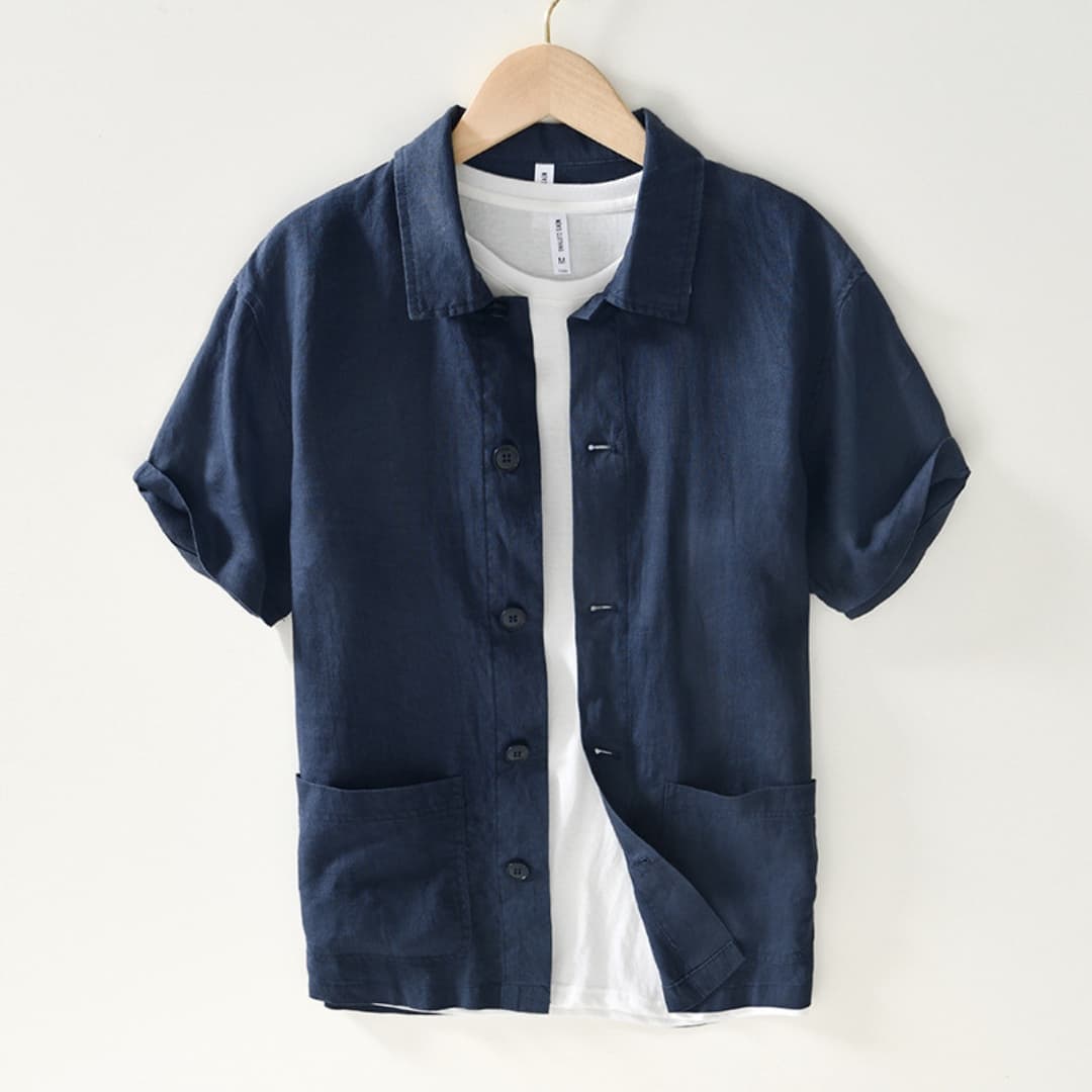 Classic 100% pure linen short sleeve shirt designed for breathable comfort and timeless summer style.