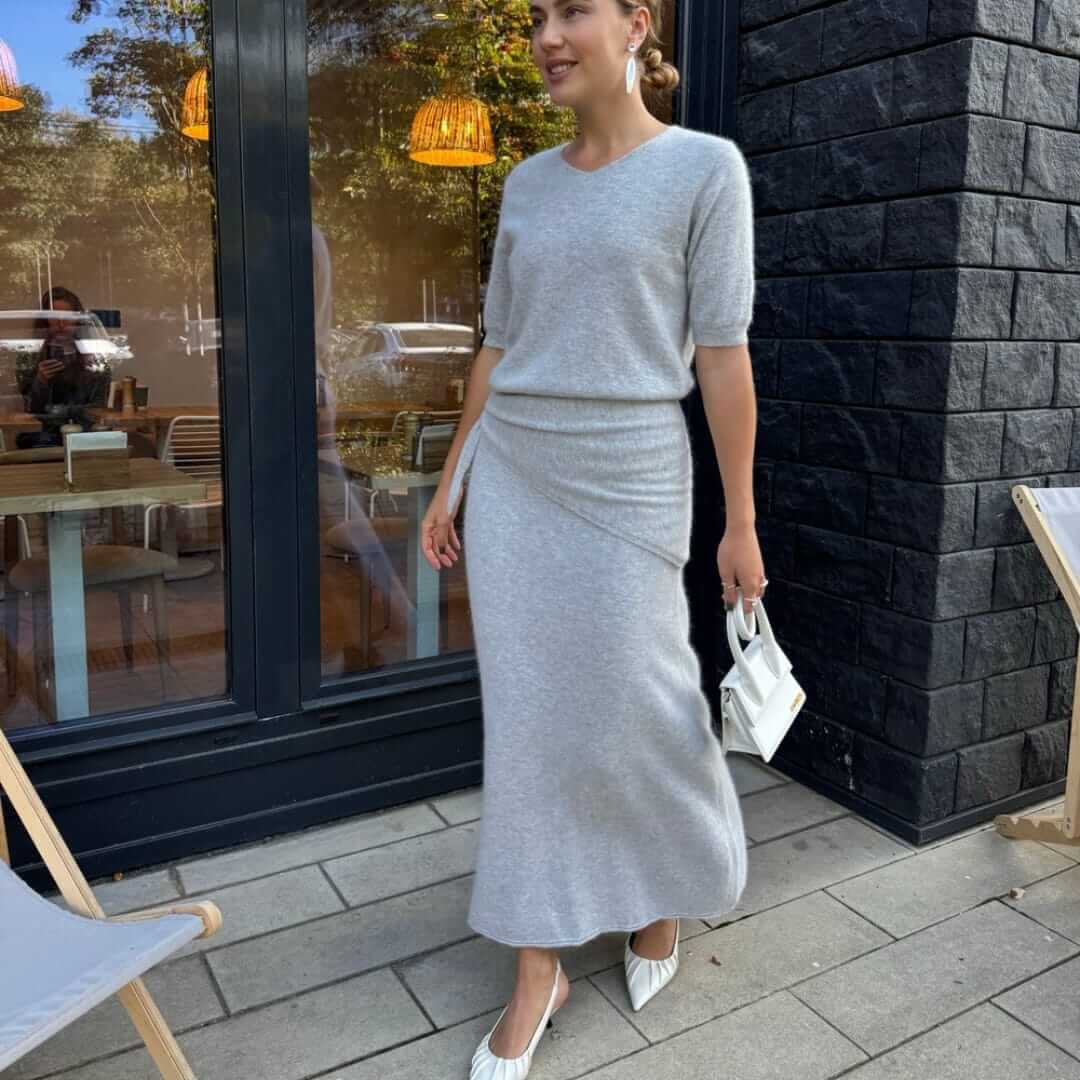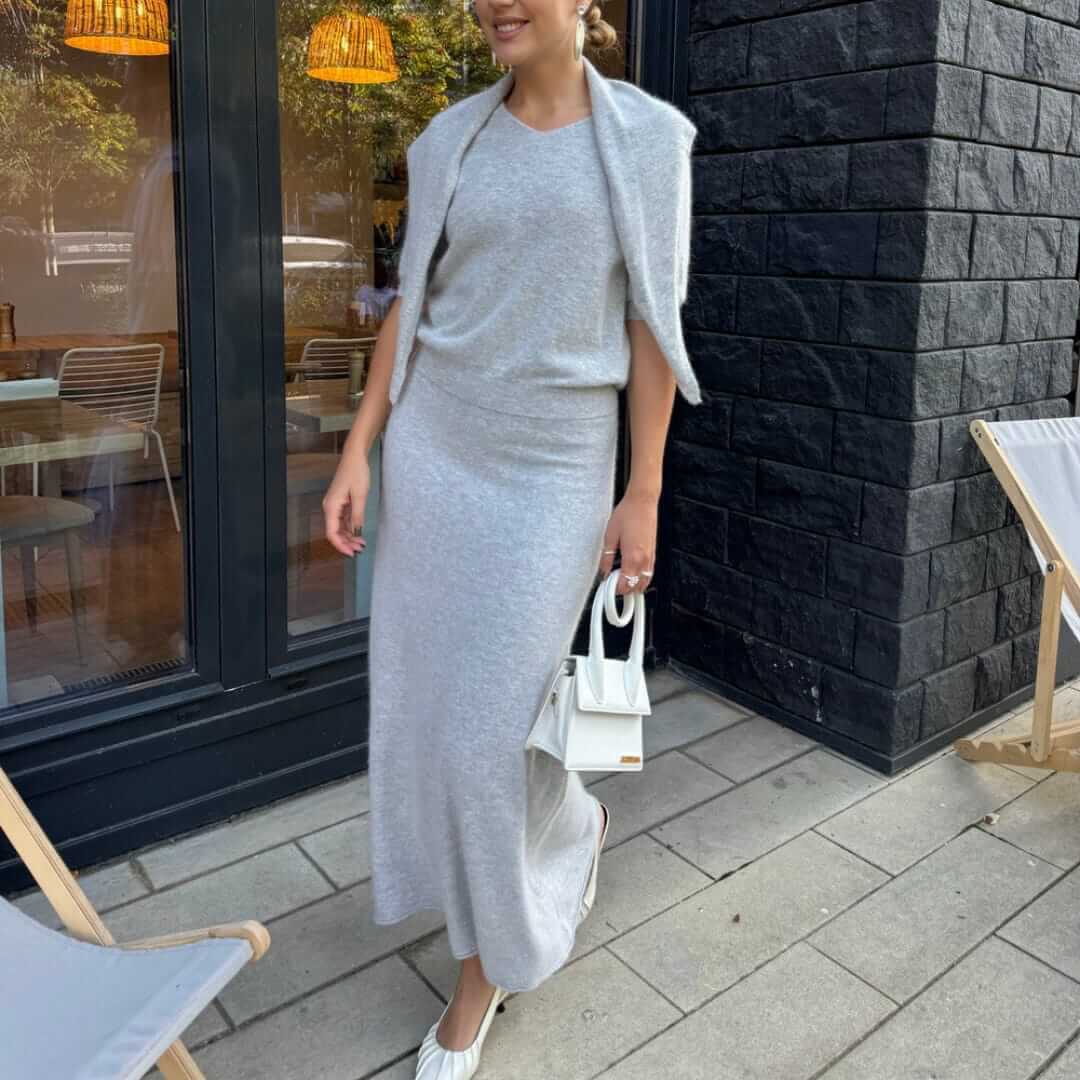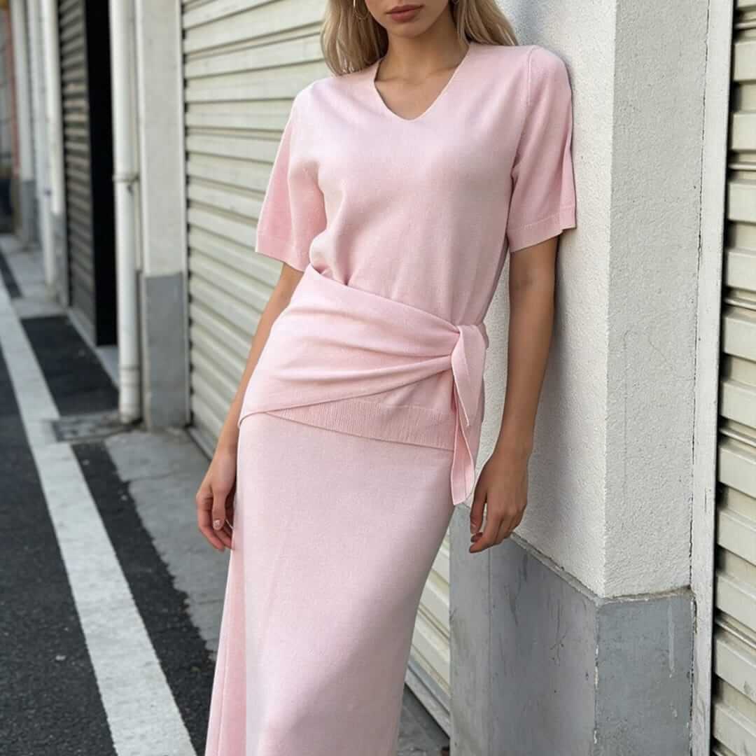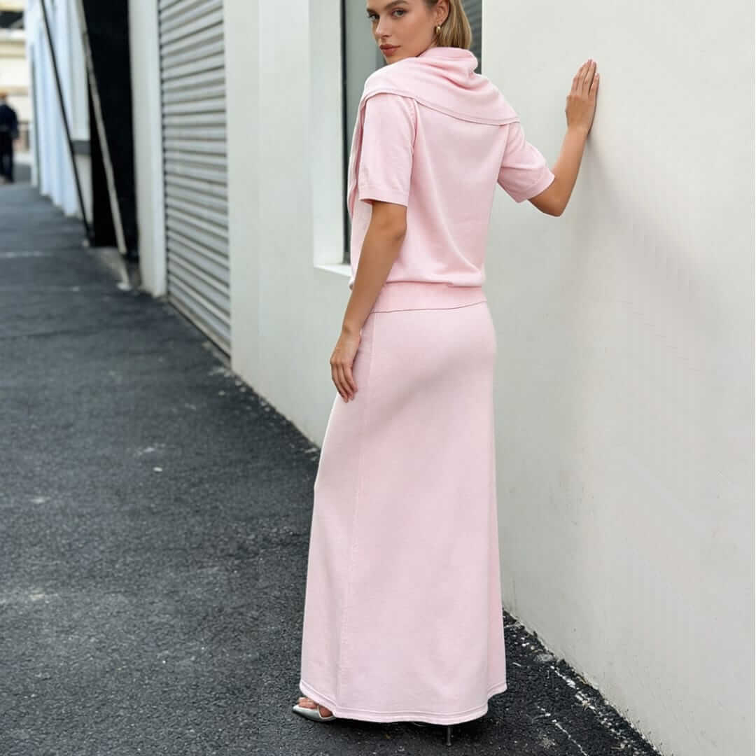 Elegant women’s 3-piece co-ord set featuring a stylish skirt, matching top, and chic scarf—perfect for effortless, modern looks at casual or semi-formal occasions.