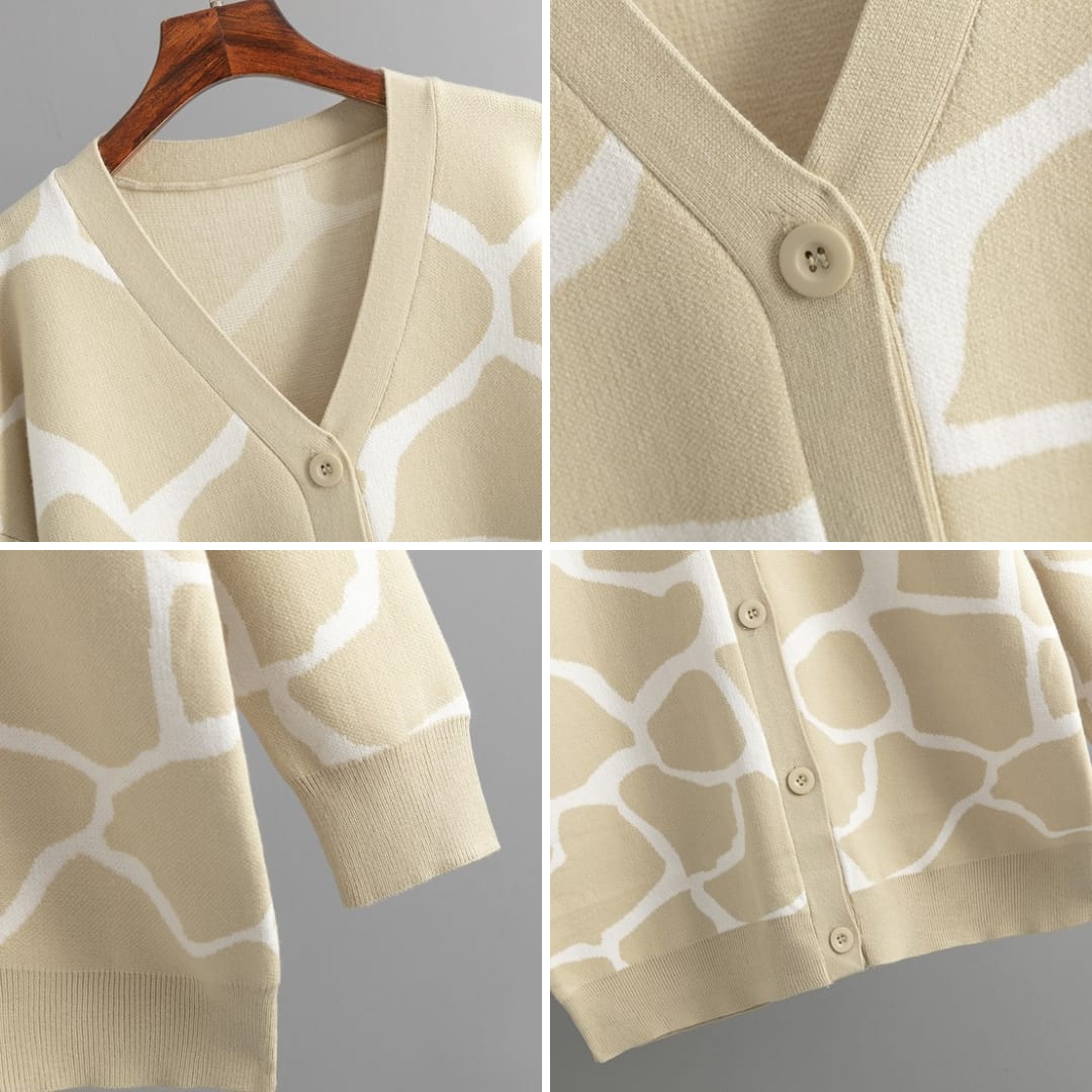 Brighten your look with our Animal Pattern Colorful Cardigan, blending playful prints with cozy comfort.