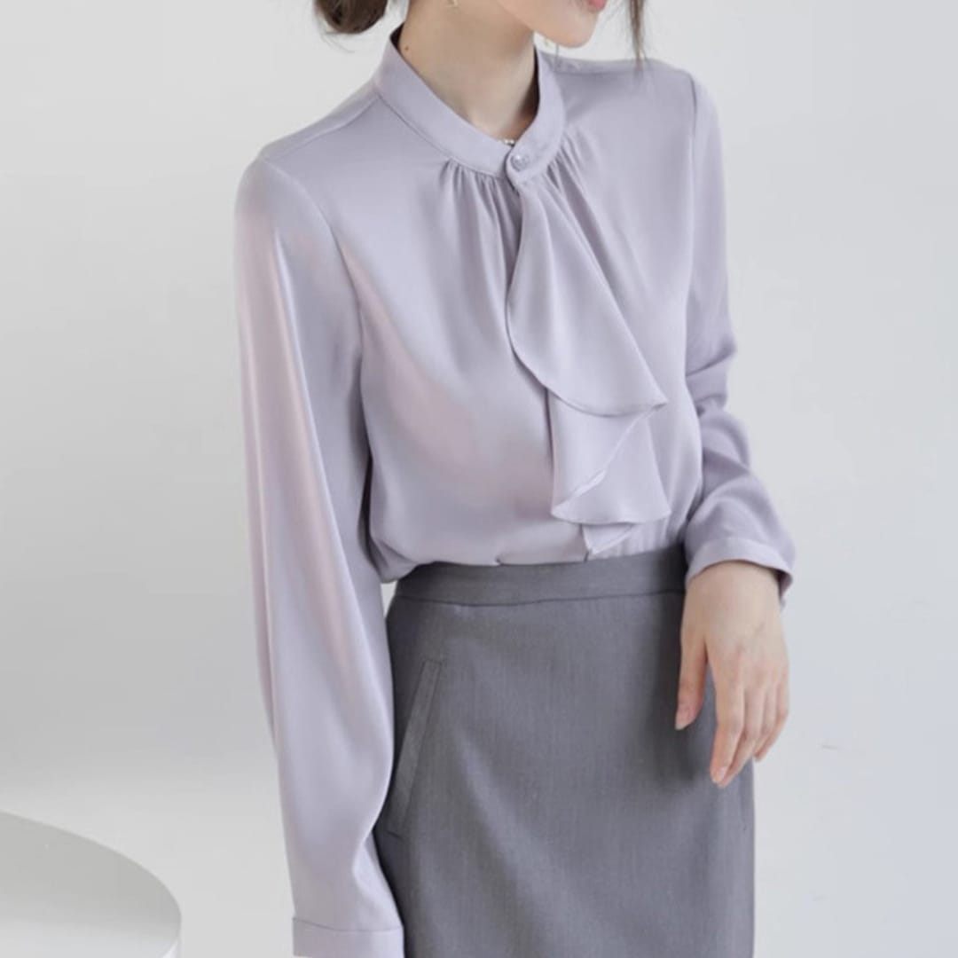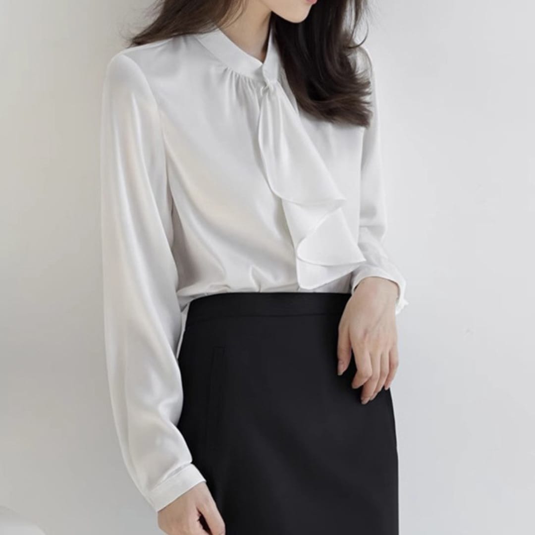 Add refined elegance to your wardrobe with this Womens Ascot-Like Collar Satin Blouse. Featuring a soft satin finish and a graceful tie-neck detail, it offers a sophisticated look perfect for work, evenings out, or special occasions.