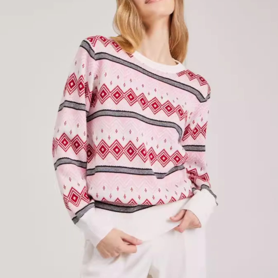 Bold and cozy, this Aztec pattern knitted sweater brings vibrant cultural flair to your winter wardrobe.