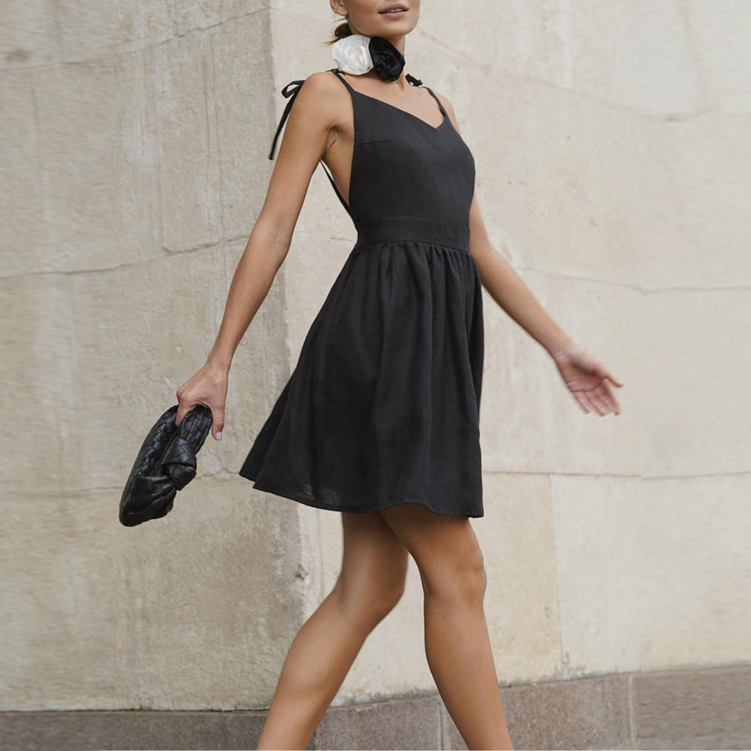 Womens suspender backless high waist dress, chic and elegant for parties or summer outings.