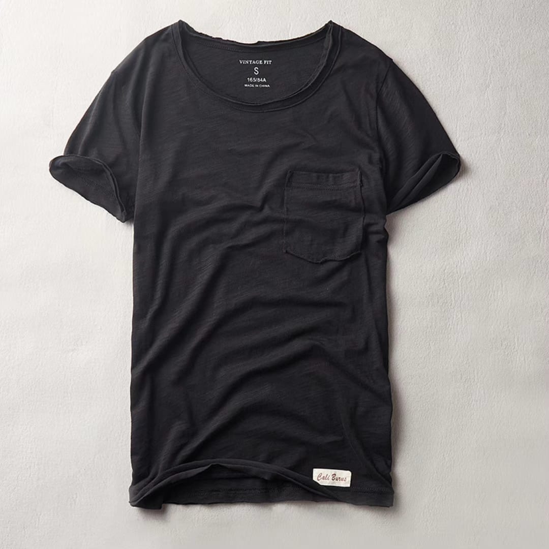 Men’s Bamboo T-Shirt with Unfinished Chest Pocket – soft, breathable, and eco-friendly casual wear.