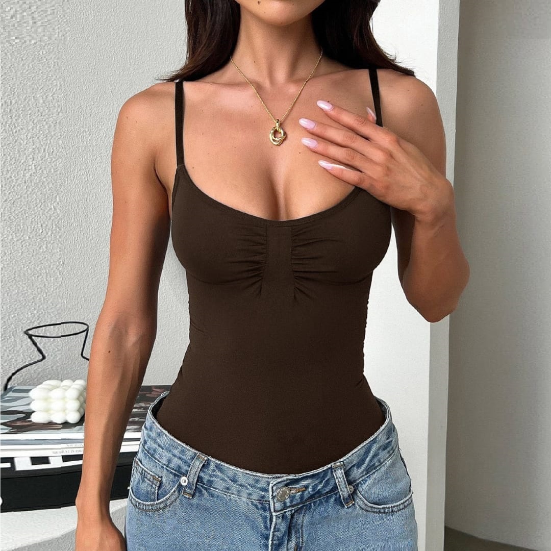 The Womens Basic Elastic Suspender Bodysuit offers a modern, streamlined look perfect for layering or wearing solo. Crafted from soft, stretchable fabric, it provides a snug and comfortable fit that enhances your natural silhouette. The elastic suspenders add a stylish edge, making it easy to pair with jeans, skirts, or shorts for casual, chic, or night-out outfits. A wardrobe essential for effortless styling and everyday comfort.