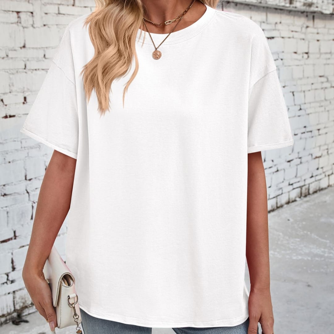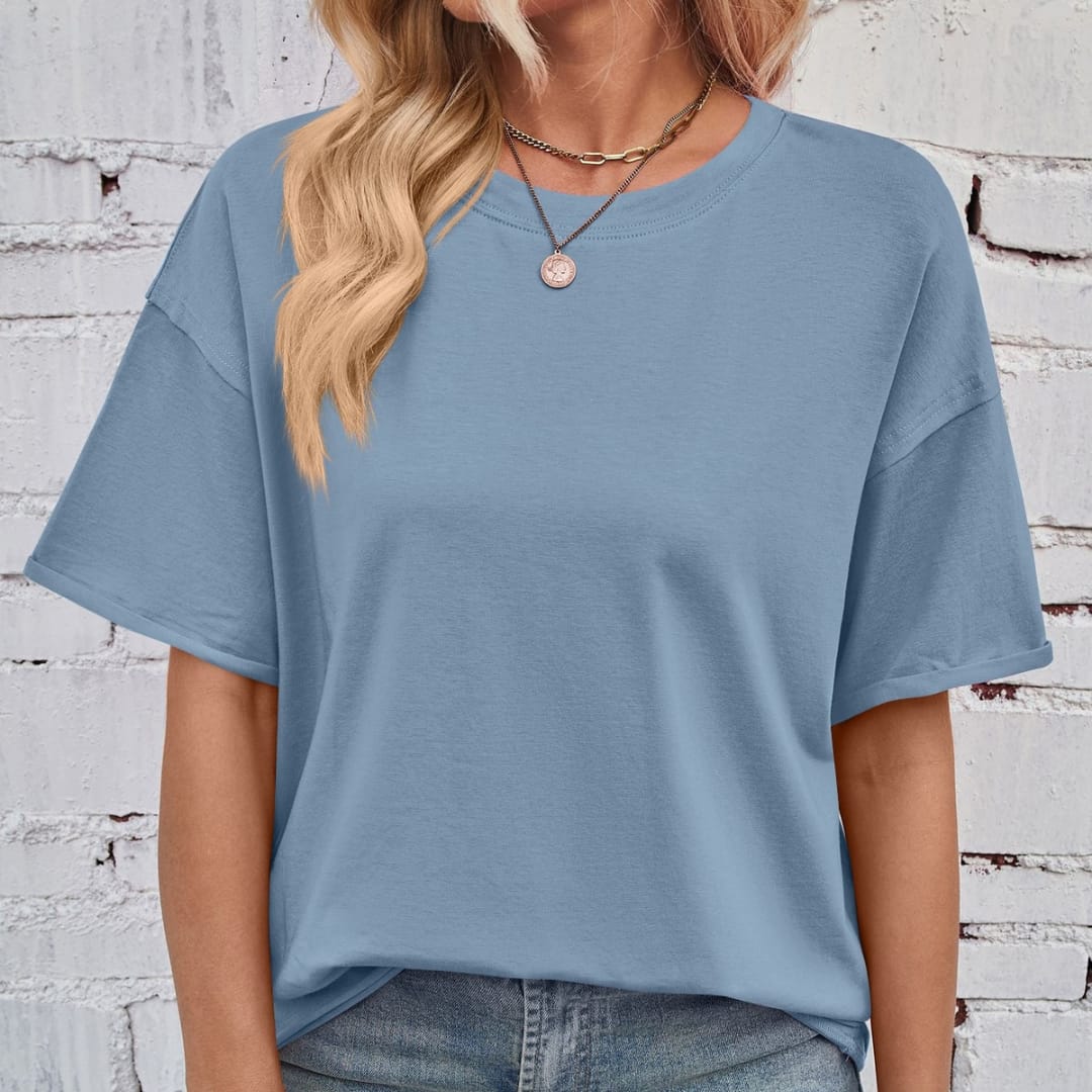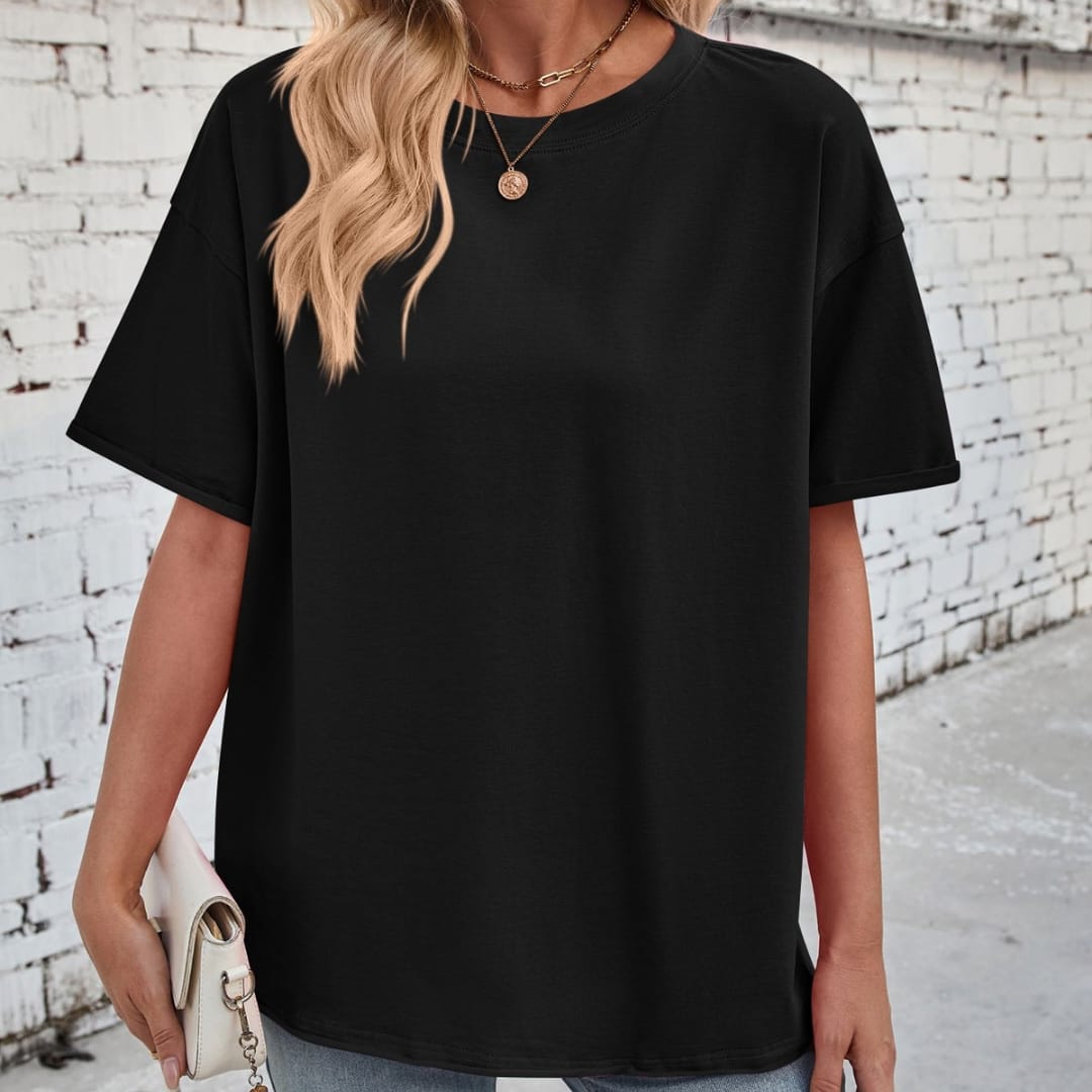 Keep it casual and chic with our Womens Basic Loose Fit Solid Color Dropped Shoulders T-Shirt soft, stylish, and perfect for everyday wear.