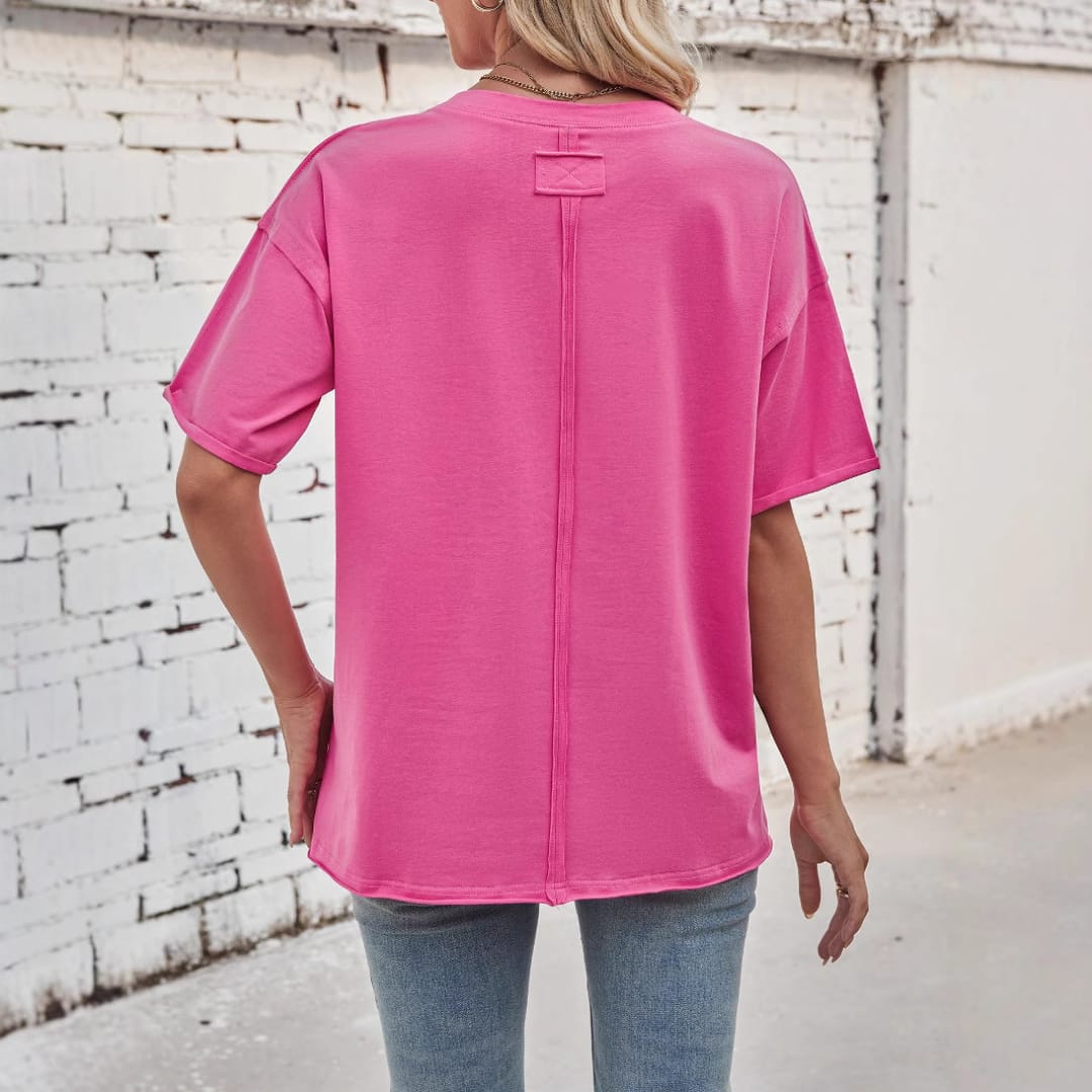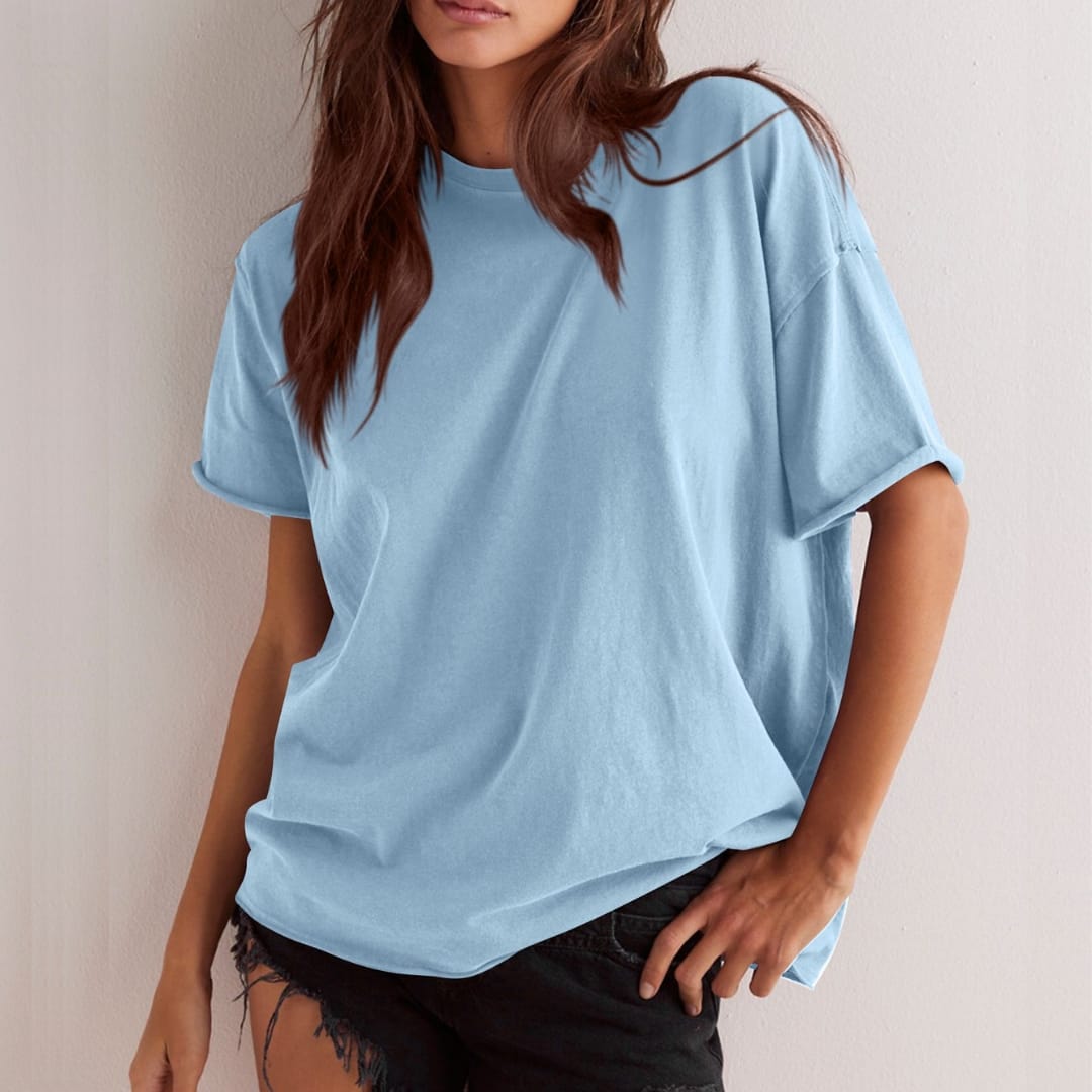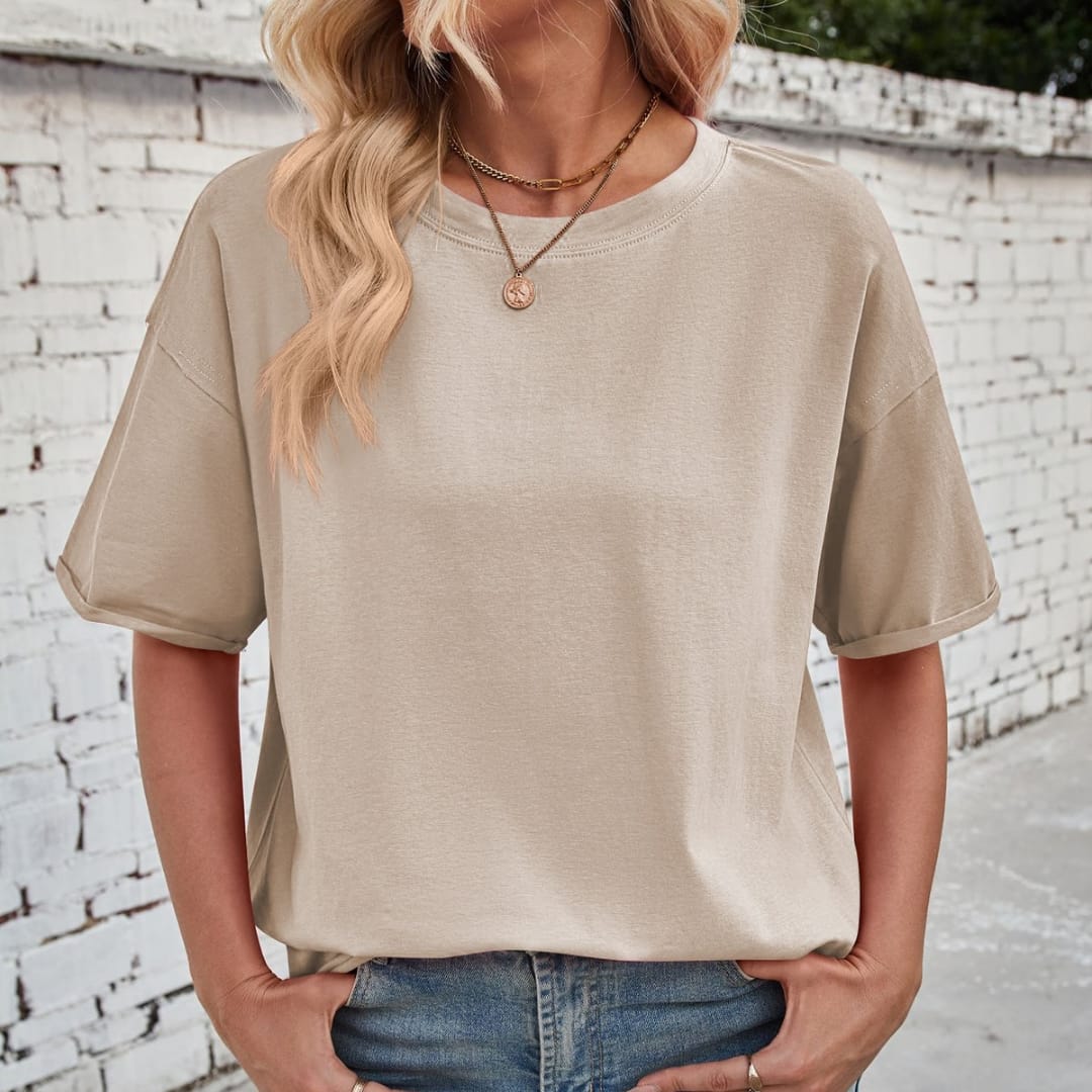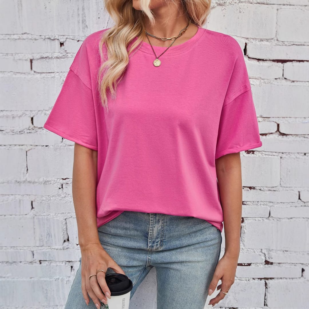 Keep it casual and chic with our Womens Basic Loose Fit Solid Color Dropped Shoulders T-Shirt soft, stylish, and perfect for everyday wear.