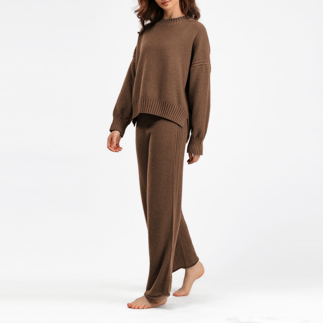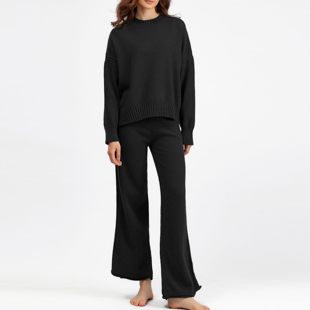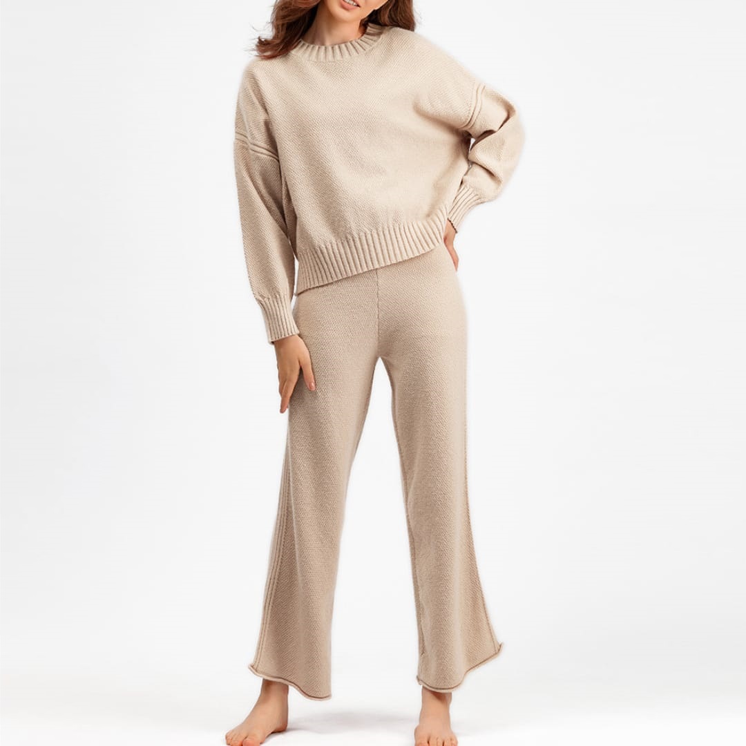 Relax in effortless style with this loose fit sweater and wide-leg pants set—perfect for cozy yet chic everyday wear.