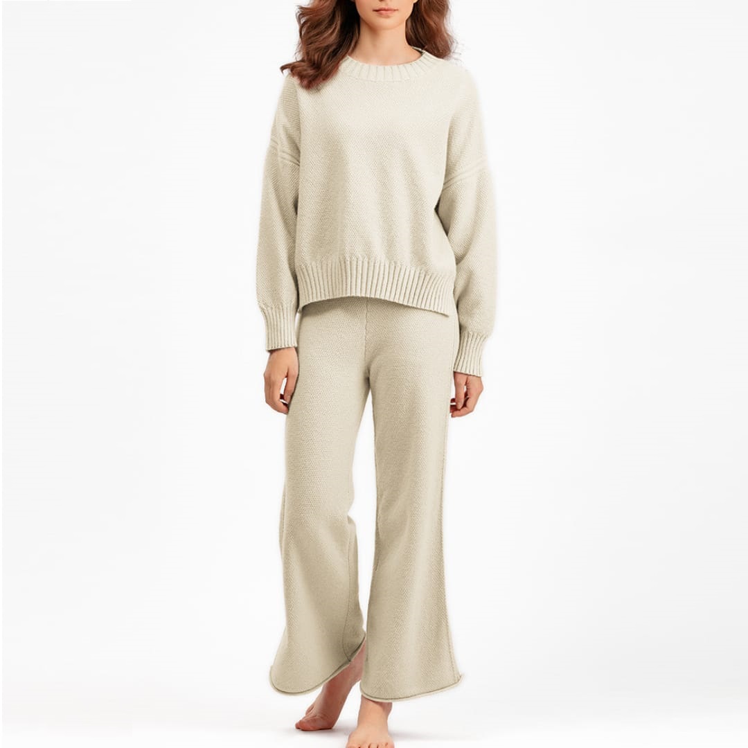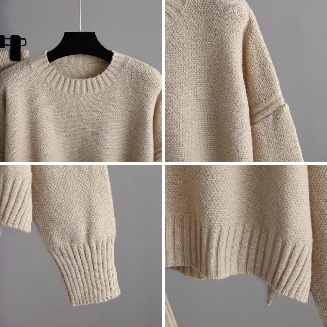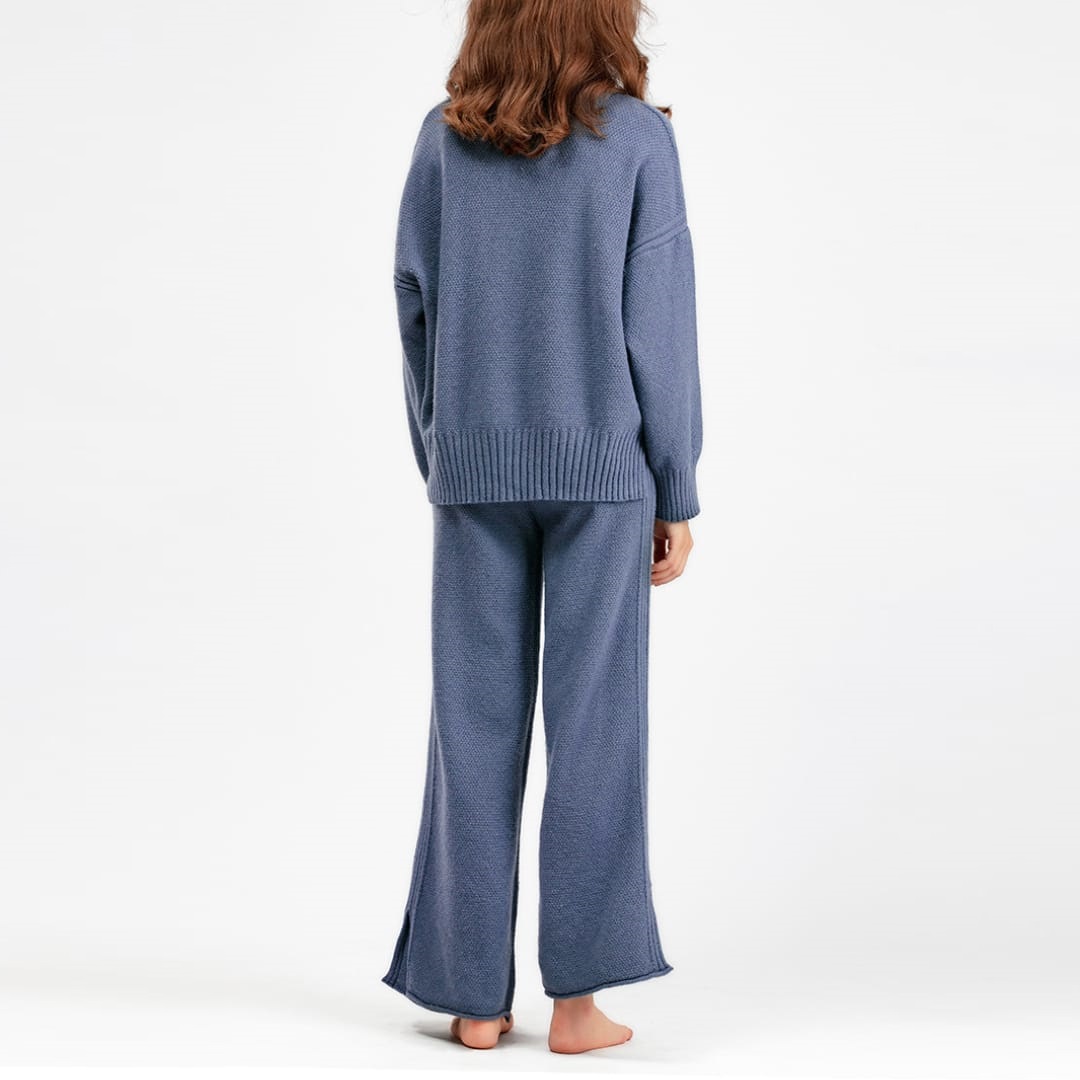 Relax in effortless style with this loose fit sweater and wide-leg pants set—perfect for cozy yet chic everyday wear.
